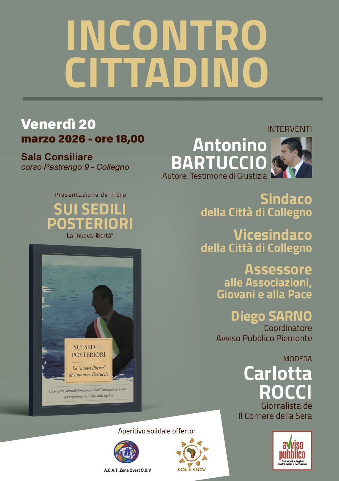 Venerdì 20 marzo alle ore 18.00 si terrà l’incontro aperto alla cittadinanza dal titolo “Sui sedili posteriori, la nuova libertà”, un momento di confronto e riflessione dedicato ai temi della legalità, del coraggio civile e della responsabilità collettiva.