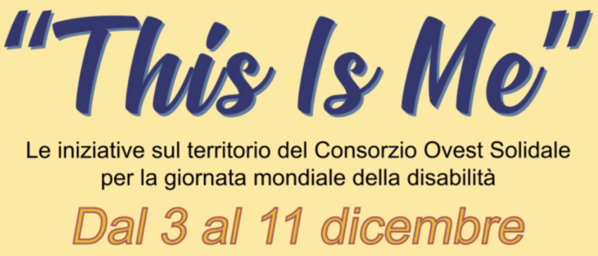 Dal 3 all’11 dicembre 2024, sul territorio del Consorzio Ovest Solidale prenderà il via “This Is Me”, la rassegna di iniziative promossa in occasione della Giornata Internazionale delle Persone con Disabilità.
