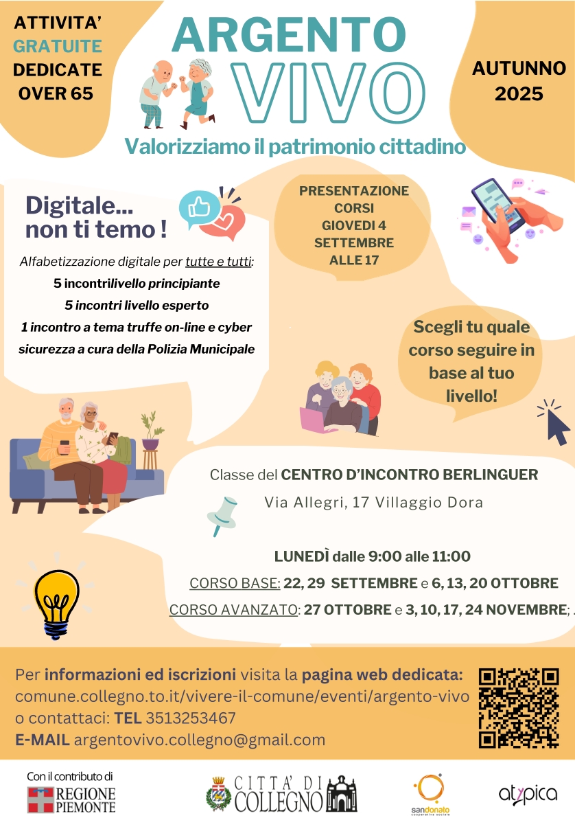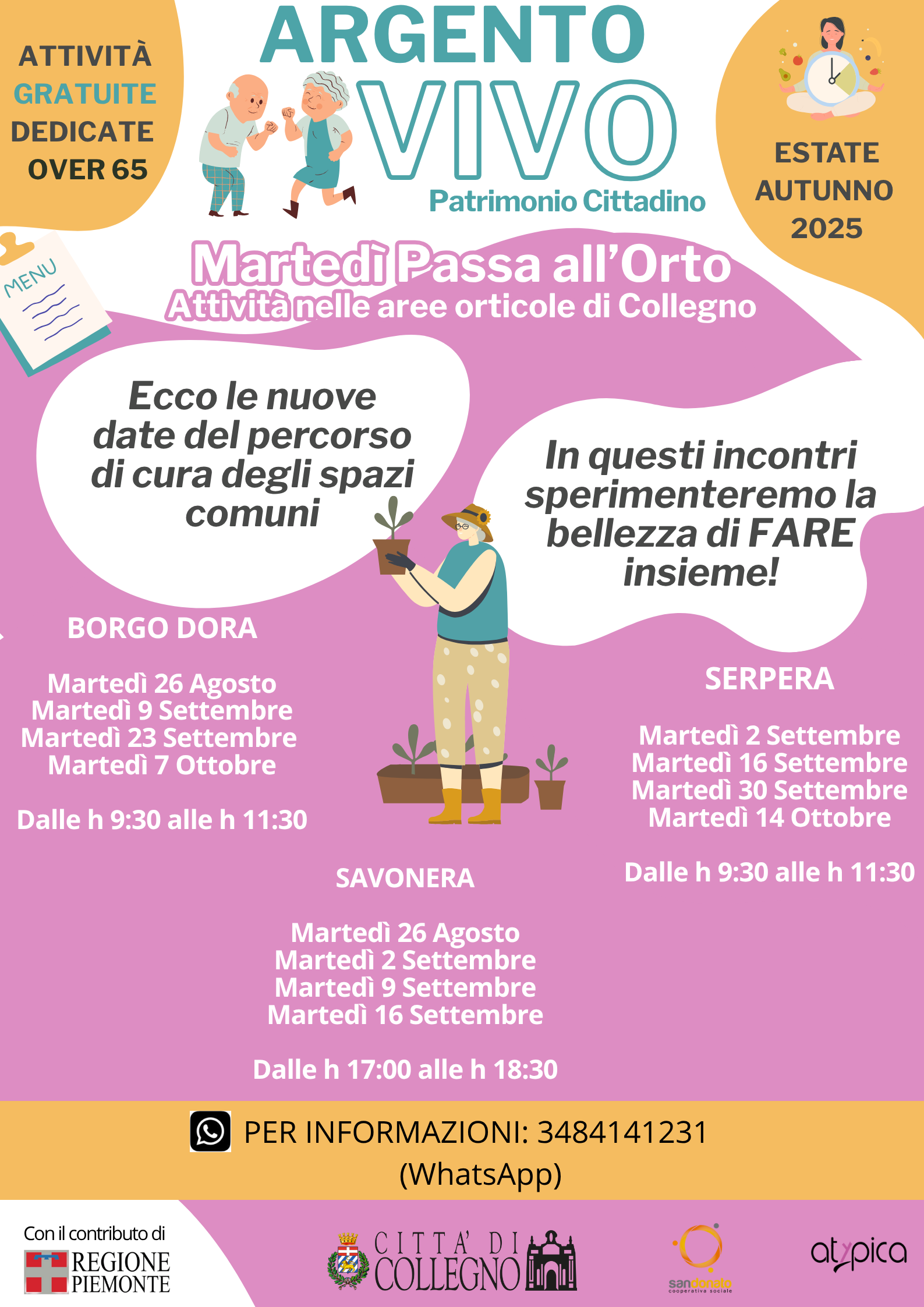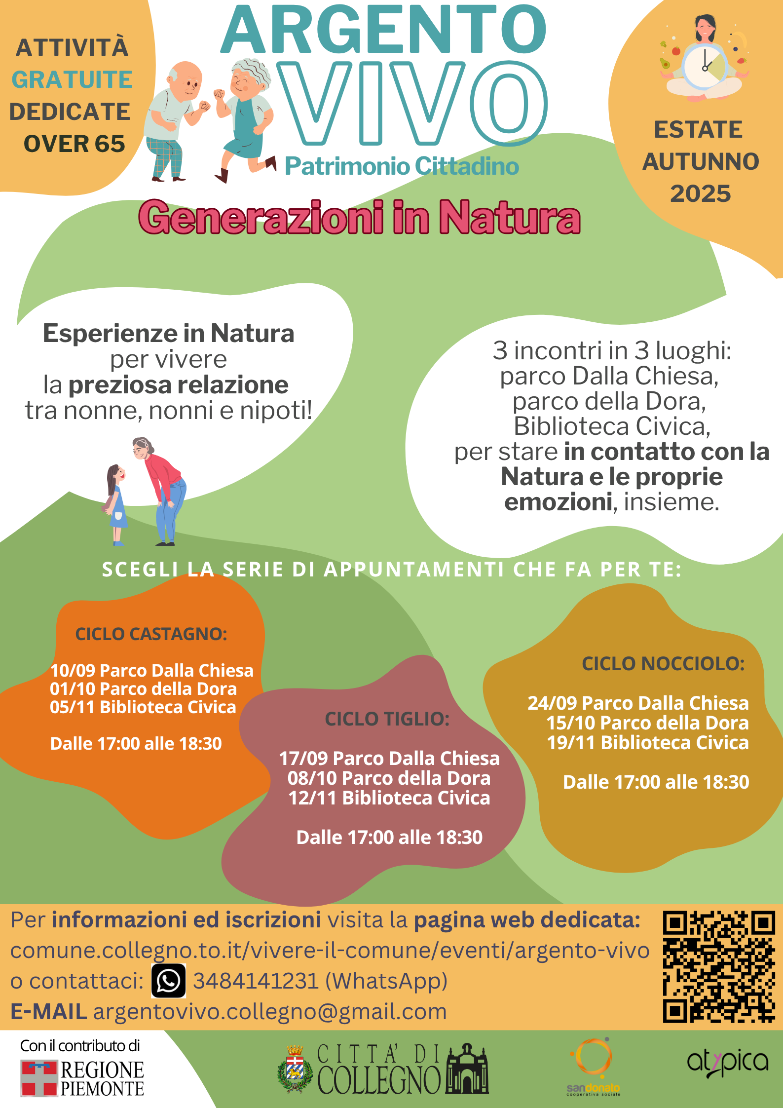 Per informazioni ed iscrizioni contattaci: tel 3513253467; e- mail argentovivo.collegno@gmail.com