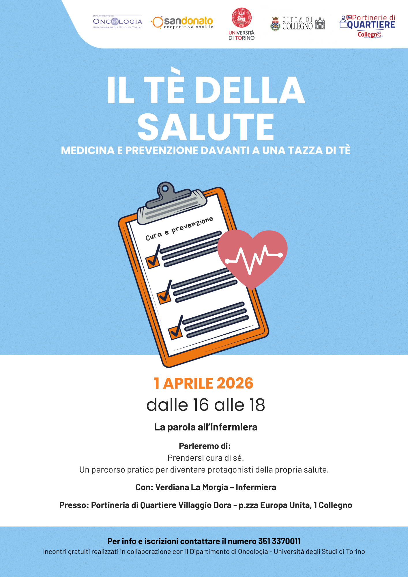 Le Portinerie di Quartiere, in collaborazione con il Comune di Collegno, il Dipartimento di Oncologia dell’Università degli Studi di Torino e la Cooperativa San Donato, propongono “Il tè della salute”, un ciclo di incontri gratuiti dedicati alla promozione della salute e alla prevenzione.