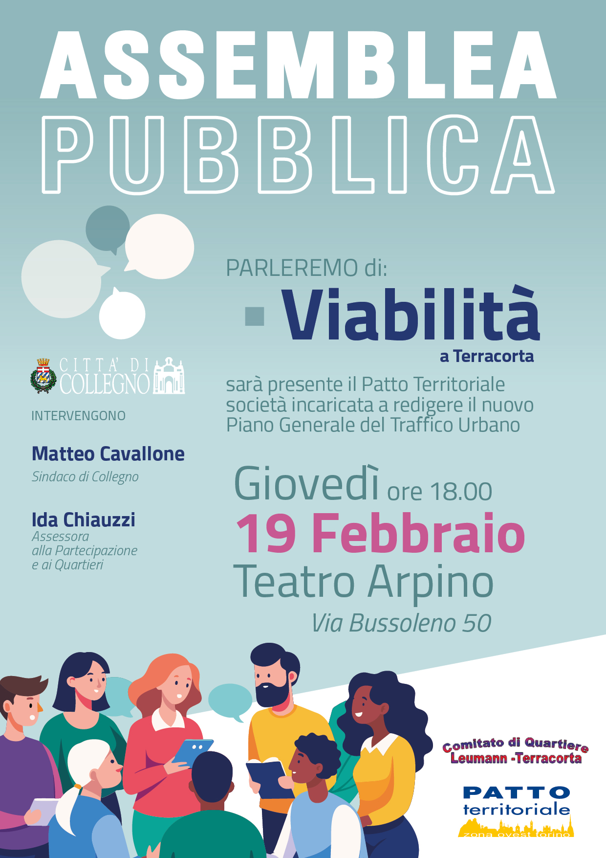 Cos'è Assemblea pubblica con: il Sindaco, Matteo Cavallone l'assessore alla partecipazione e ai quartieri, Ida Chiauzzi la società incaricata a redigere il nuovo Piano Generale del Traffico Urbano, Patto Territoriale